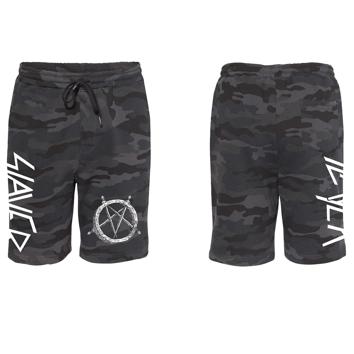 The Hell Awaits Pentagram Fleece Shorts fuse ultimate softness with Slayer’s signature brutality. Shadowy camo. A thorn-wrapped pentagram. Slayer’s iconic logo down the leg. These shorts are built for wherever the chaos takes you.